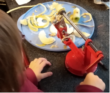 Übrigens – die Apfelschälmaschine war dabei das Highlight – meine beiden Enkeltöchter (2 und 3 Jahre alt) konnten gar nicht genug kriegen.