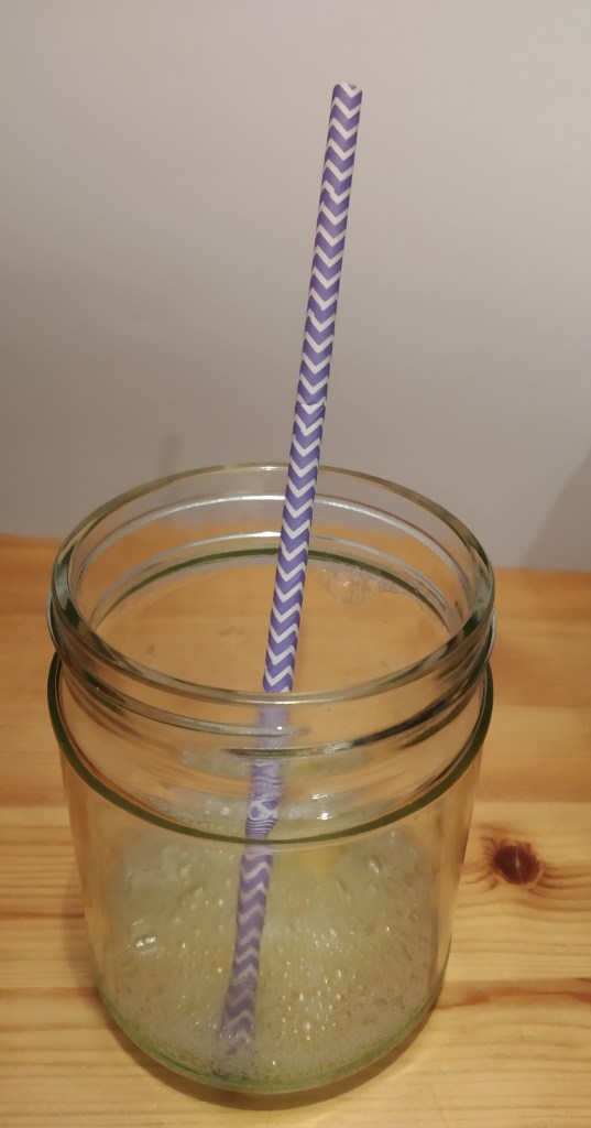 Dann einen Strohalm nehmen, eintauchen und ganz vorsichtig in der Kälte daußen Seifenblasen pusten.