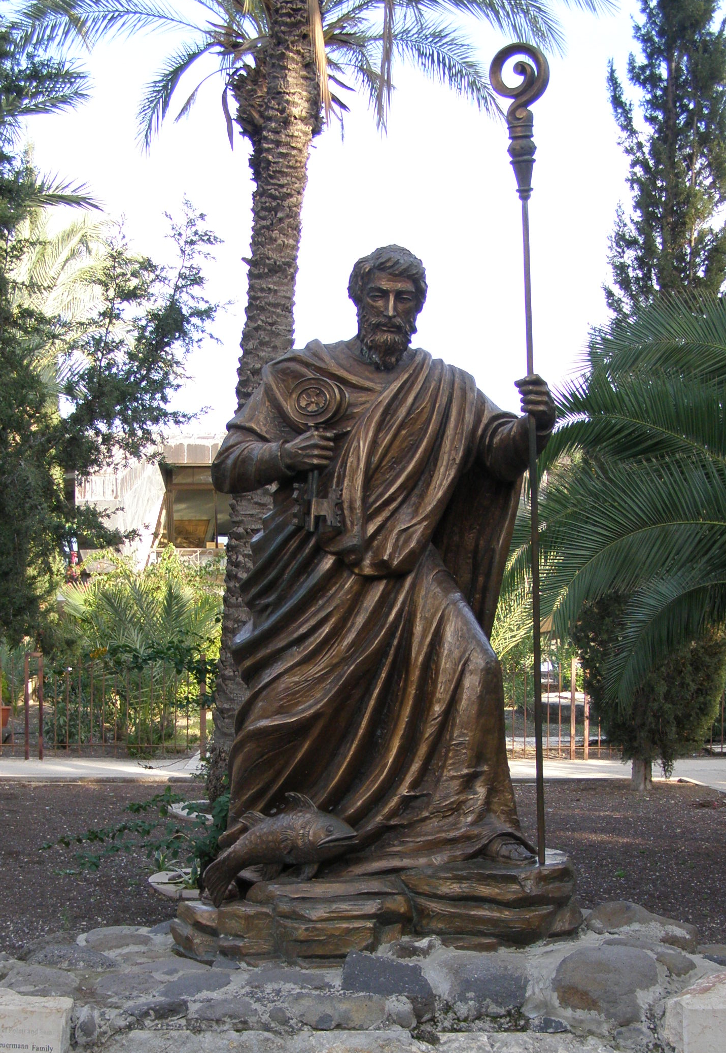 Er hat die „Schlüssel für den Himmel“ und einen Bischofsstab in der Hand.