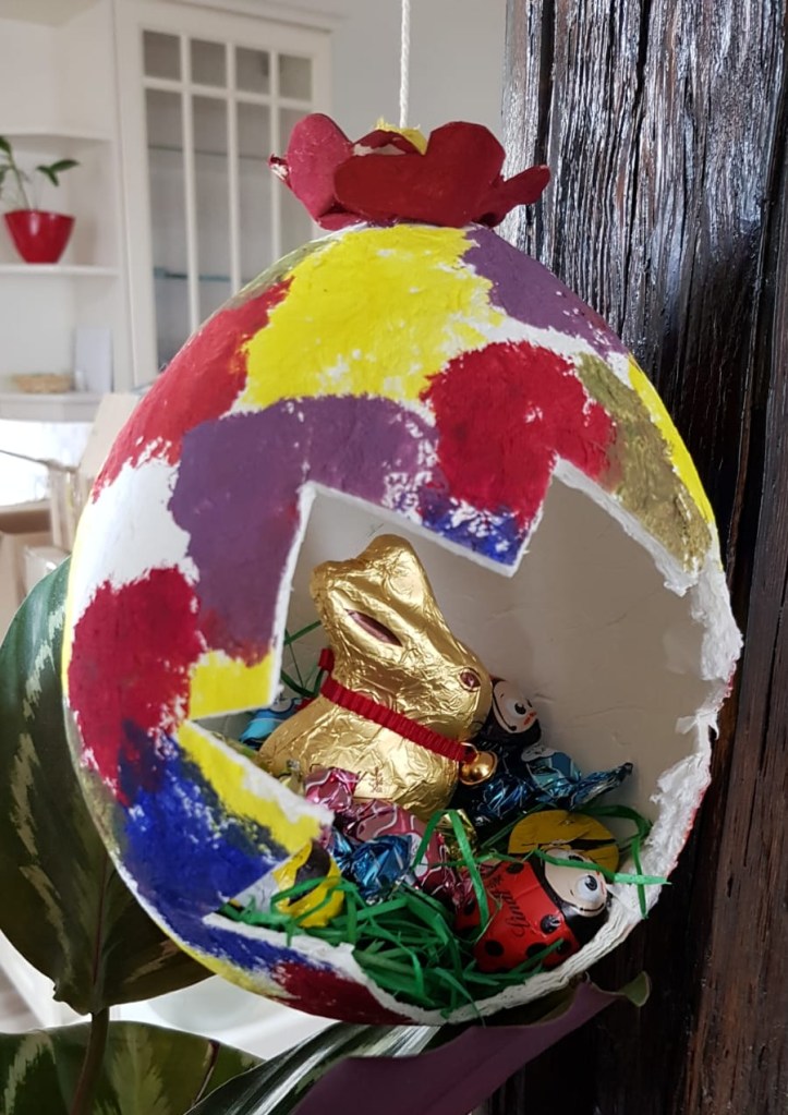später dann evtl. Farbe, wenn du dein Ei bemalen möchtest