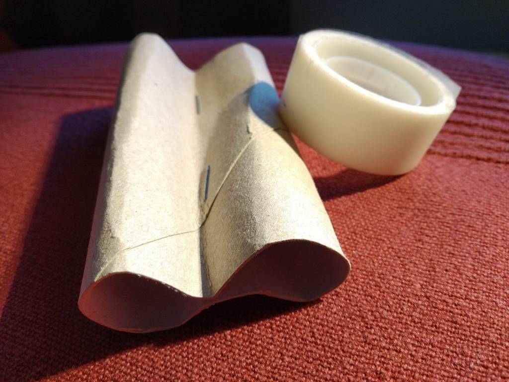 Drücke sie mittig zusammen, so dass du zwei „Röhren“ hast. Nimm evtl. einen Tacker zu Hilfe, damit es besser hält.
