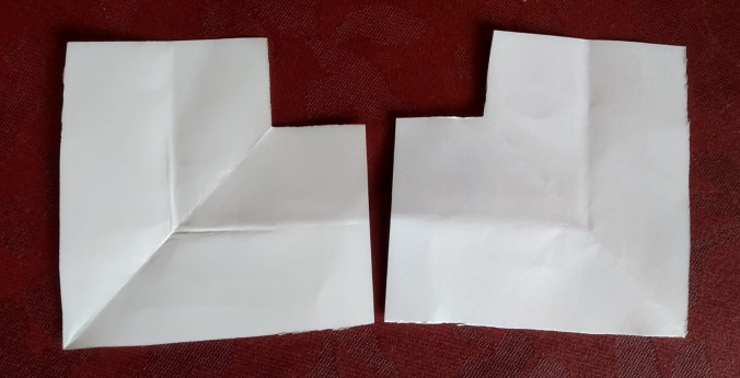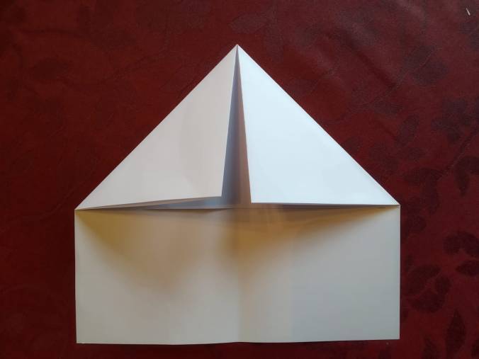 Dann knickst du die Ecken wie zu einem Zelt: