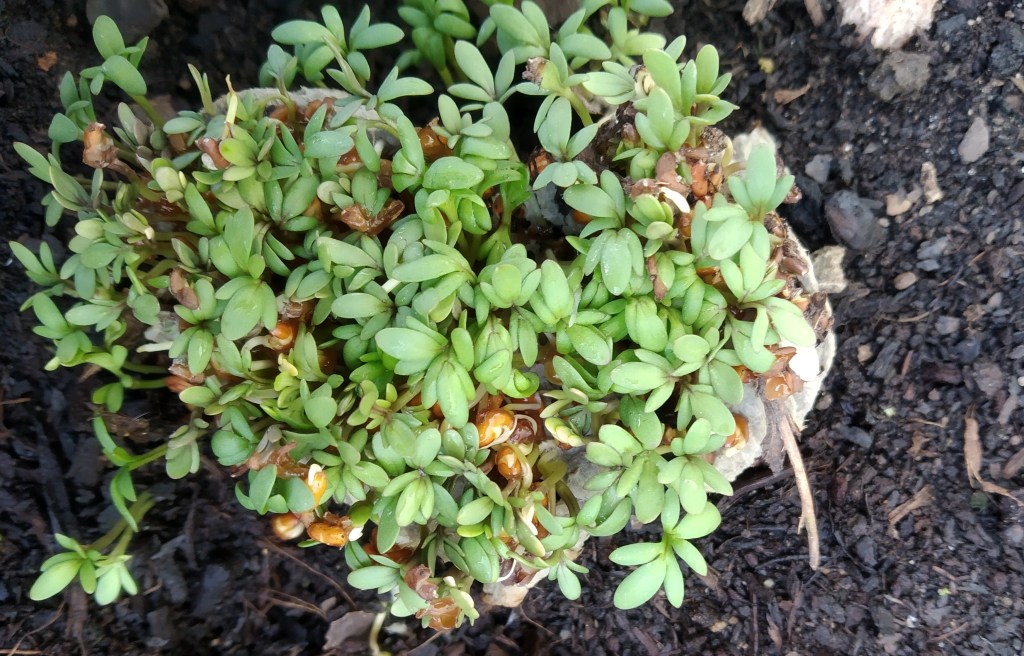 Das braucht man einfach nur auf die Erde legen und feucht halten.