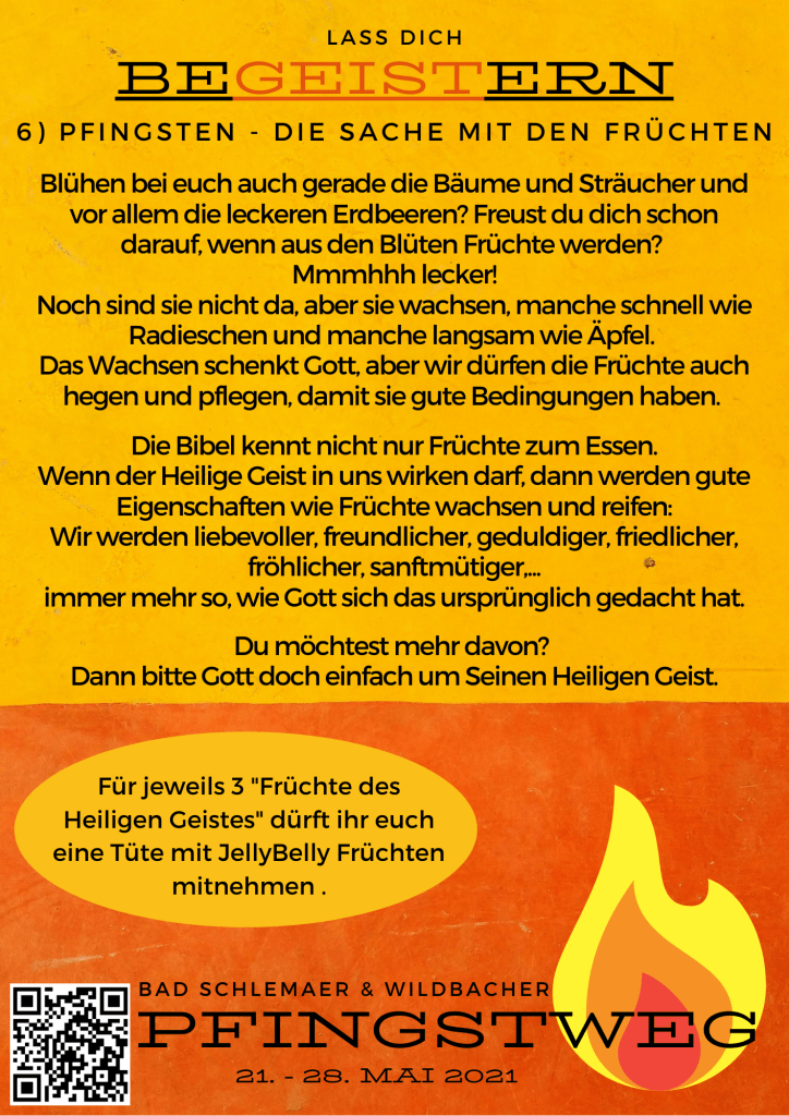 Hier ging es um den „Obstsalat“ des heiligen Geistes – gute Eigenschaften, die wie Früchte“ wachsen, wenn wir den Heiligen Geist in uns wirken lassen.