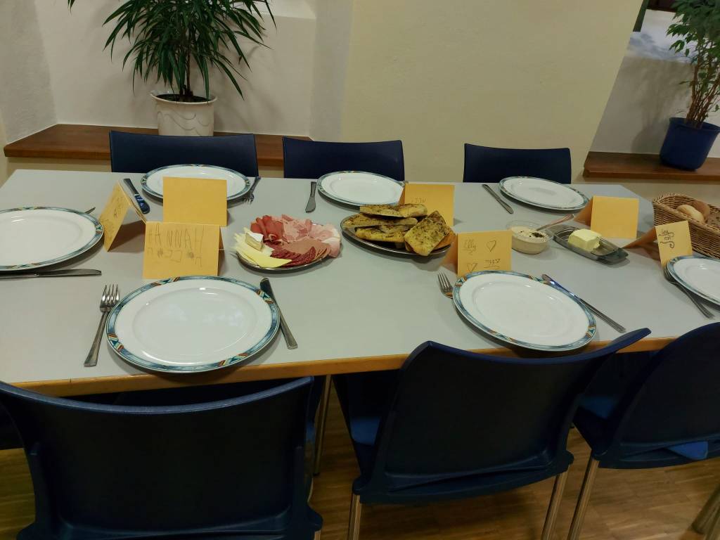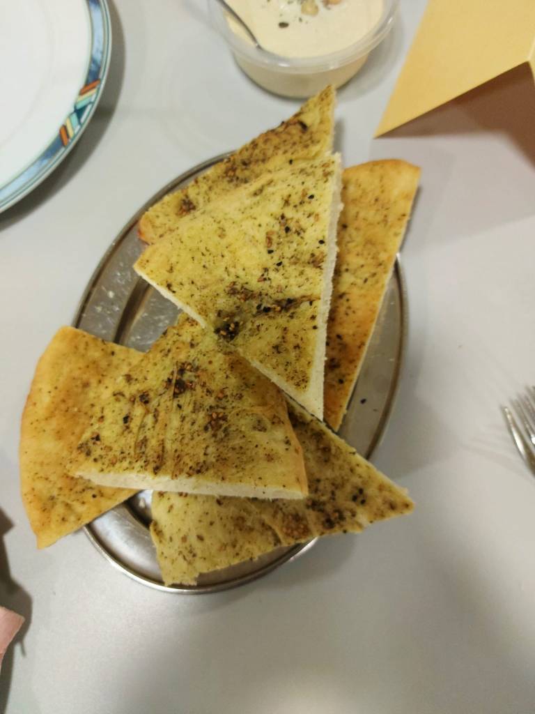 Passend zum Thema gab es zum Abendbrot leckeres, von Andrea frisch gebackenes Fladenbrot mit Zaatar, Humus und viel Gemüse.