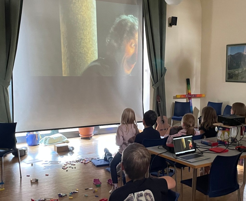 Chris erzählte uns spannend die Geschichte des Königs David: