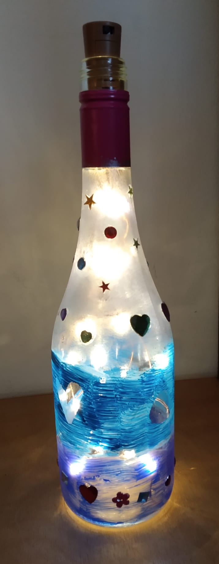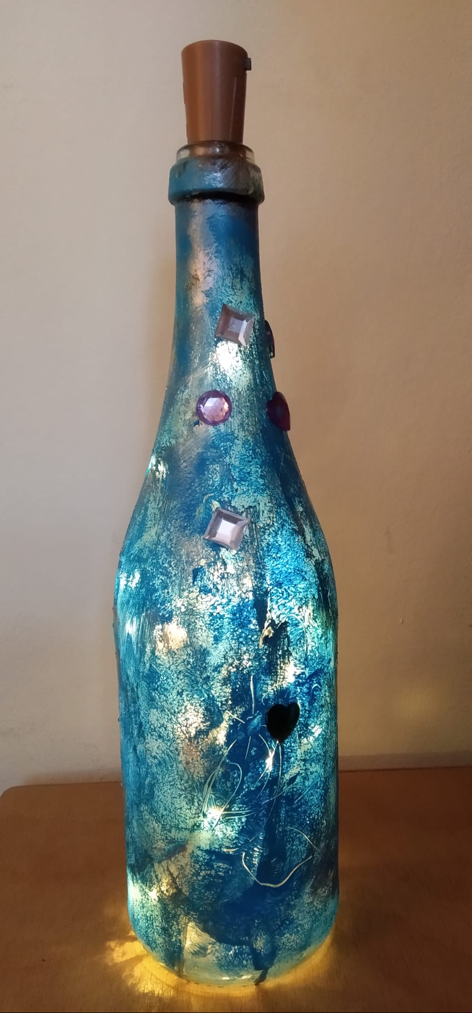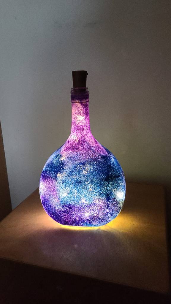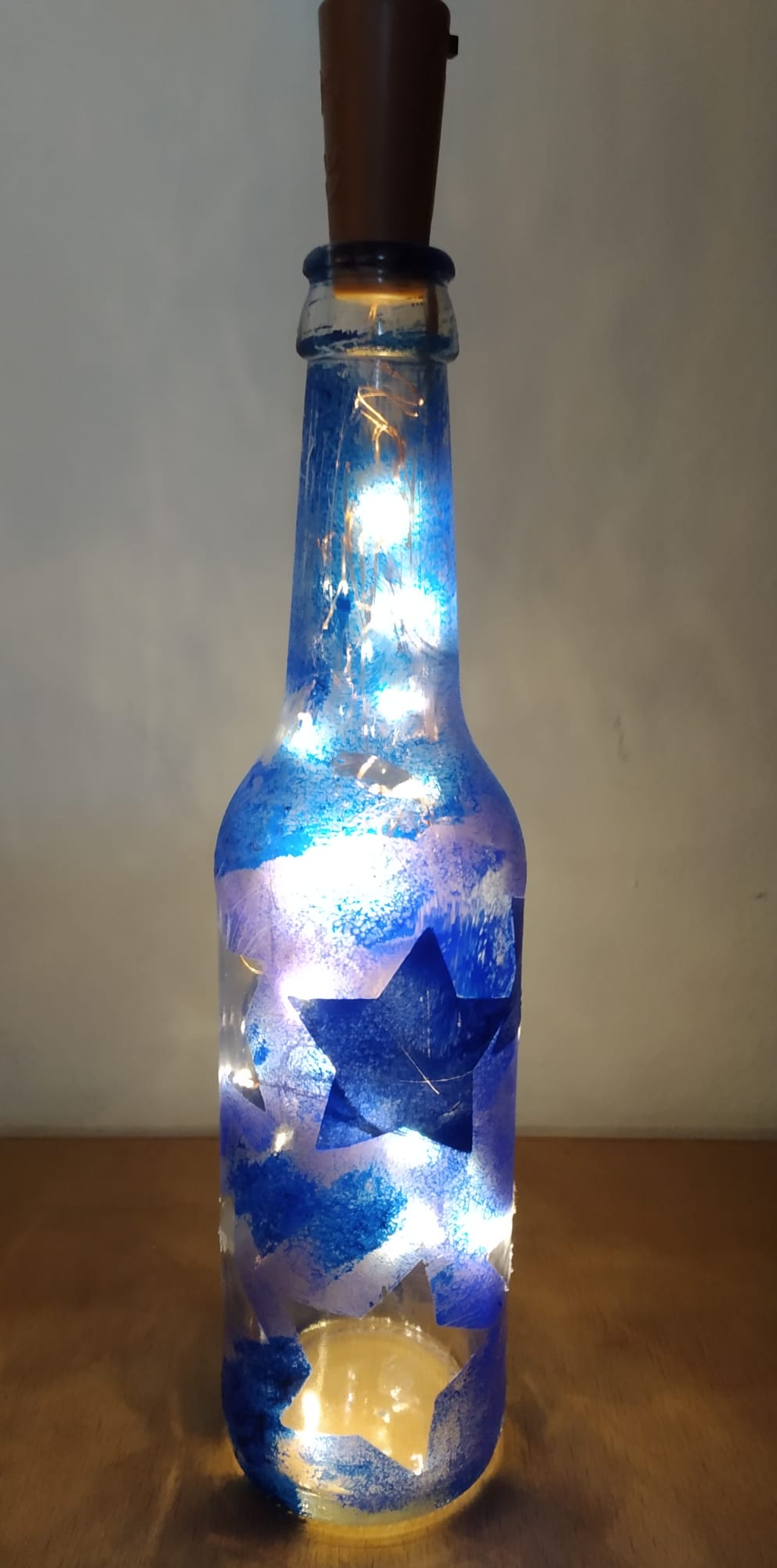 * Lichterkette mit einem „Korken“, die du in die Flasche steckst.