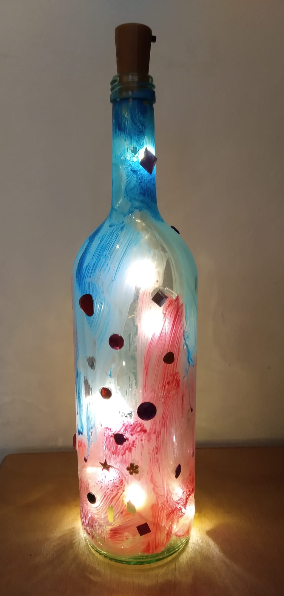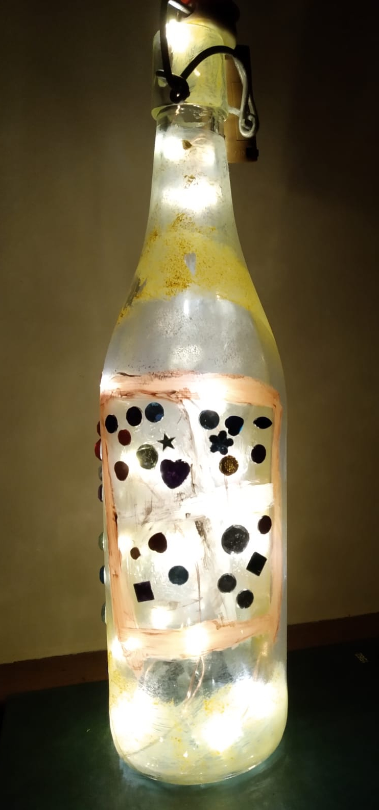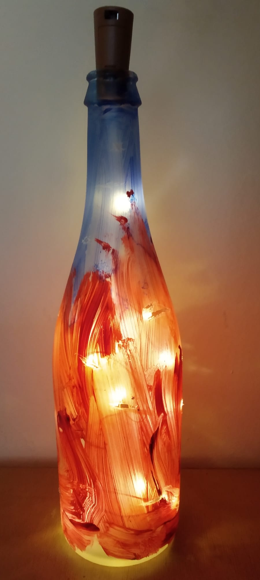 * Lichterkette mit einem „Korken“, die du in die Flasche steckst.