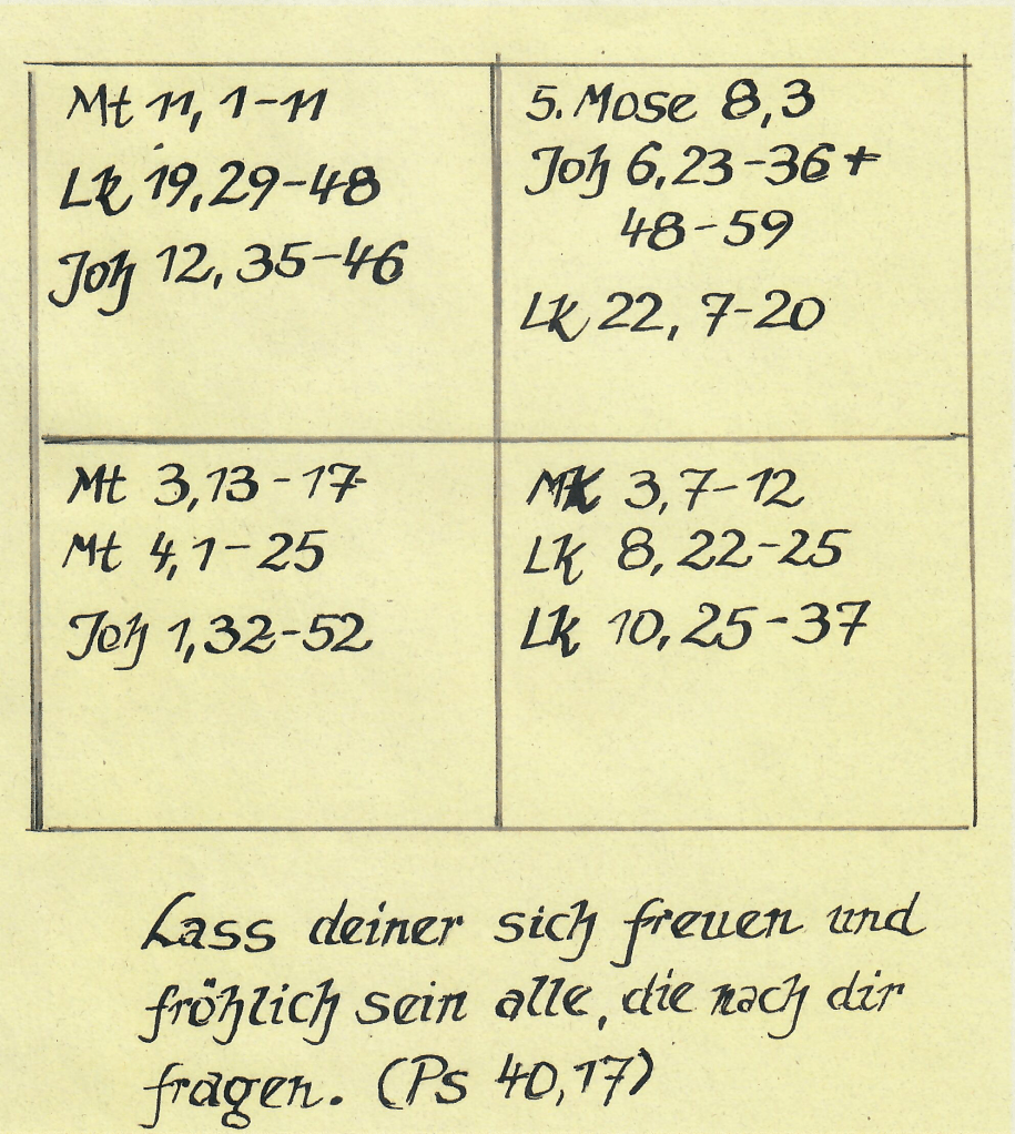 Das ist bestimmt wieder etwas aus der Bibel. Aber das werden wir erst zu Hause erfahren.“