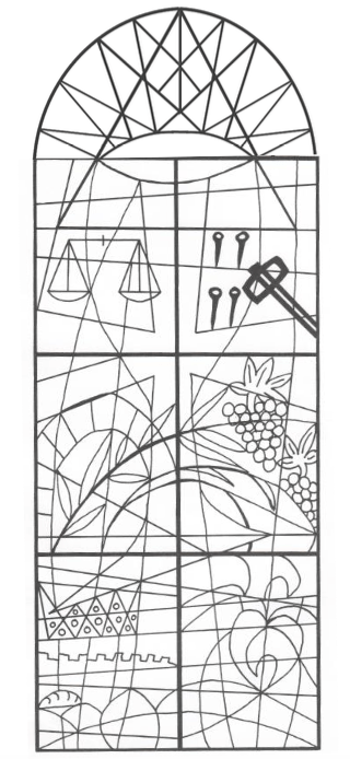 So konnten sie alle Baupläne noch einmal ausmalen. Und jeder konnte dann das fertige Bild zu Hause in ein Fenster hängen. So konnten sie wenigstens sehen, wie das fertige Fenster ausgesehen hätte.