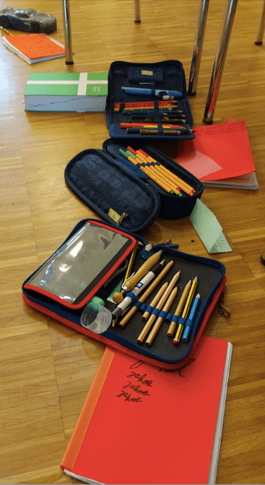 Wer fertig war, hat schon mal sein Tischkärtchen gestaltet und sein Wappen zum Vorstellen gemalt.