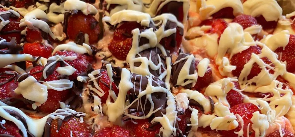 Dann Erdbeeren oder andere Früchte darauf legen und mit