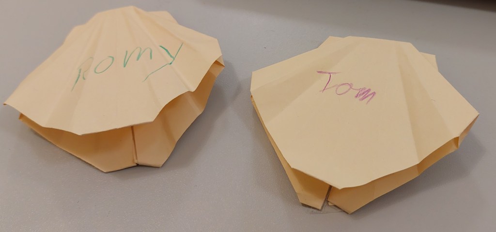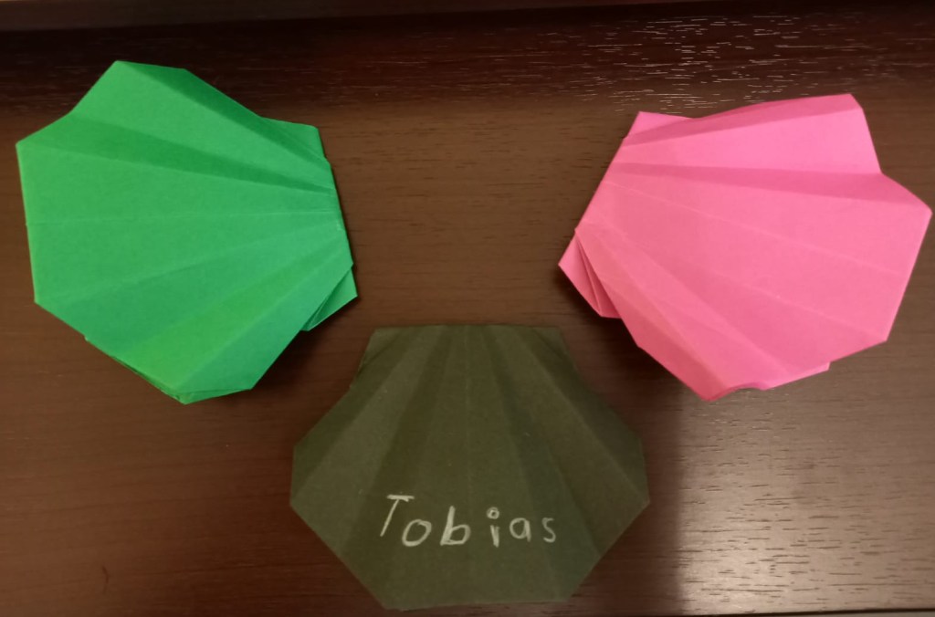 Passend zum Thema bastelten wir uns uns eine „Muschel“ als Namensschild.