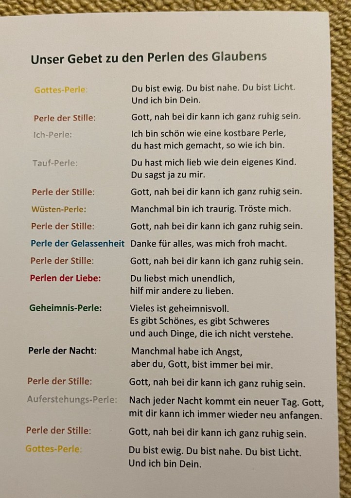 Zum Abendgebet haben wir auch das Gebet zu den Perlen des Glaubens gesprochen.