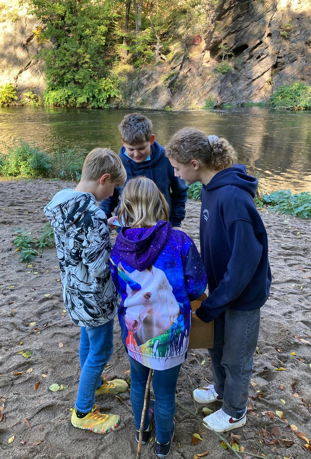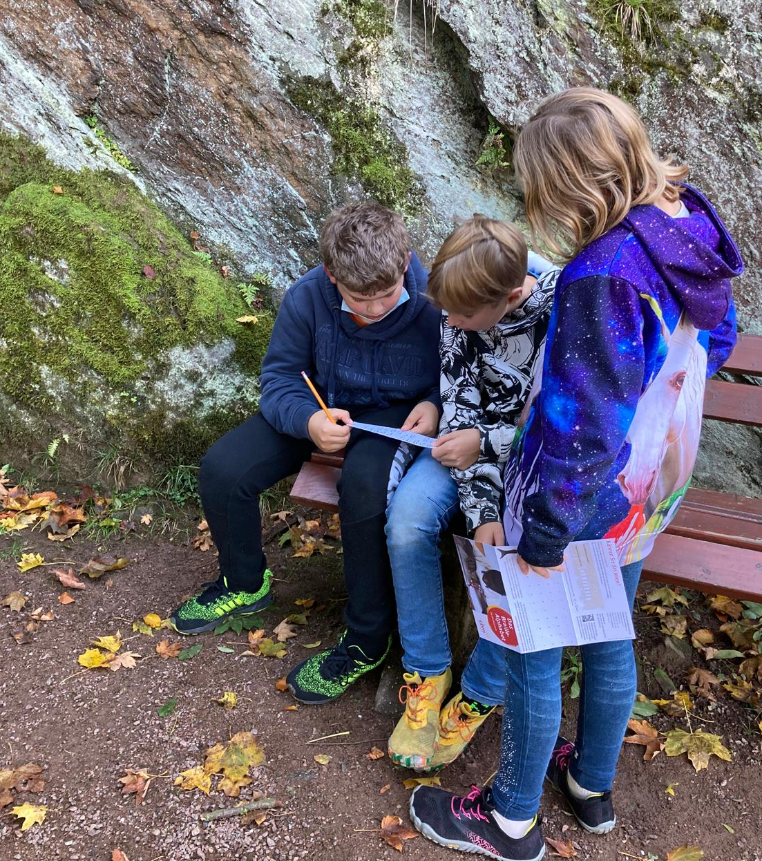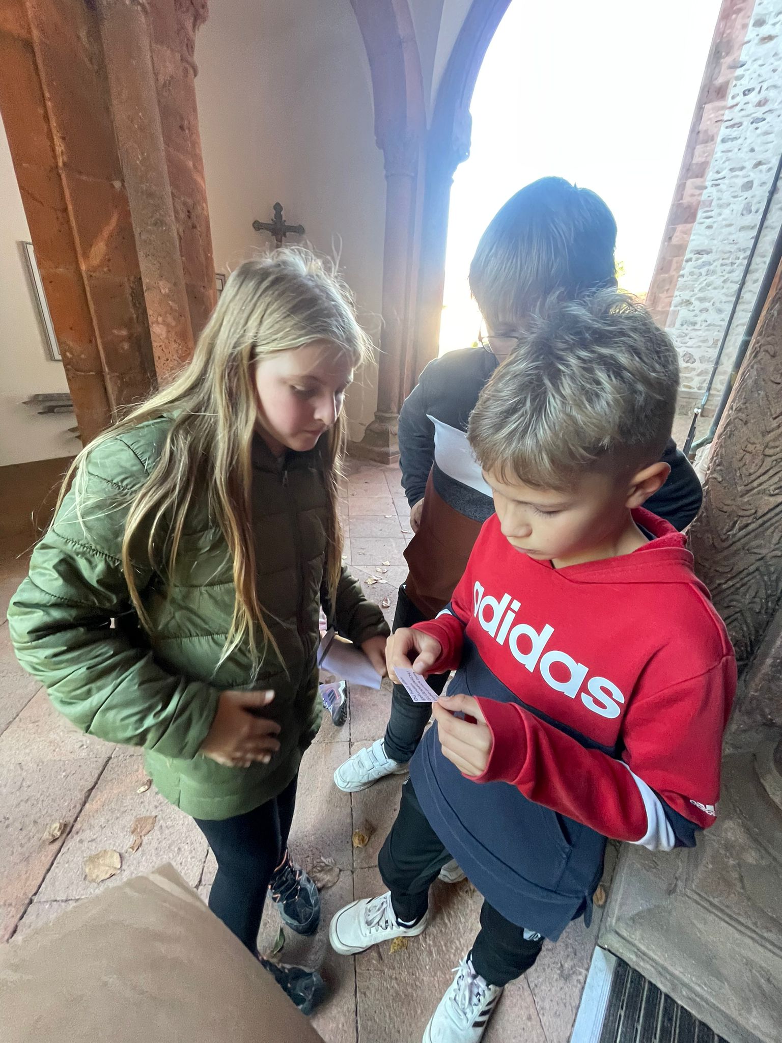 Am Nachmittag gab es denn ein Geländespiel, wo man lauter Geheimcodes entziffern und knacken musste. Das war ganz schön knifflig und wir sind ziemlich durch den Park geflitzt: Wir waren in der „Wüste“, im „Geheimnis“- Labyrinth, im „Stille“-Garten, beim „Tauf-erinnungswasser“, im „Nacht“-Schacht…
