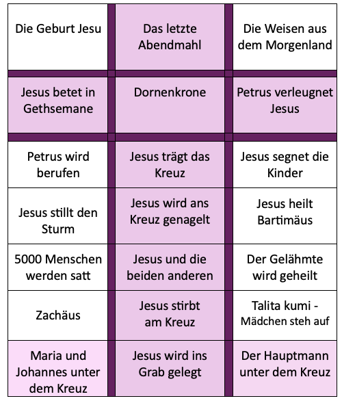 Die Passionsgeschichten sind als Kreuz dargestellt.