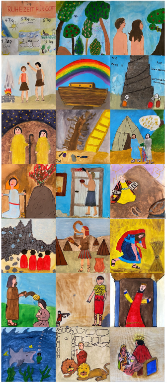 Naama’s Lieblingsgeschichte ist die von Nehemia und das hat sie richtig toll gemalt (leider hat das Bild nicht mehr auf das Fastentuch gepasst, dafür liegt es als besonderes Exemplar auf dem Altar)