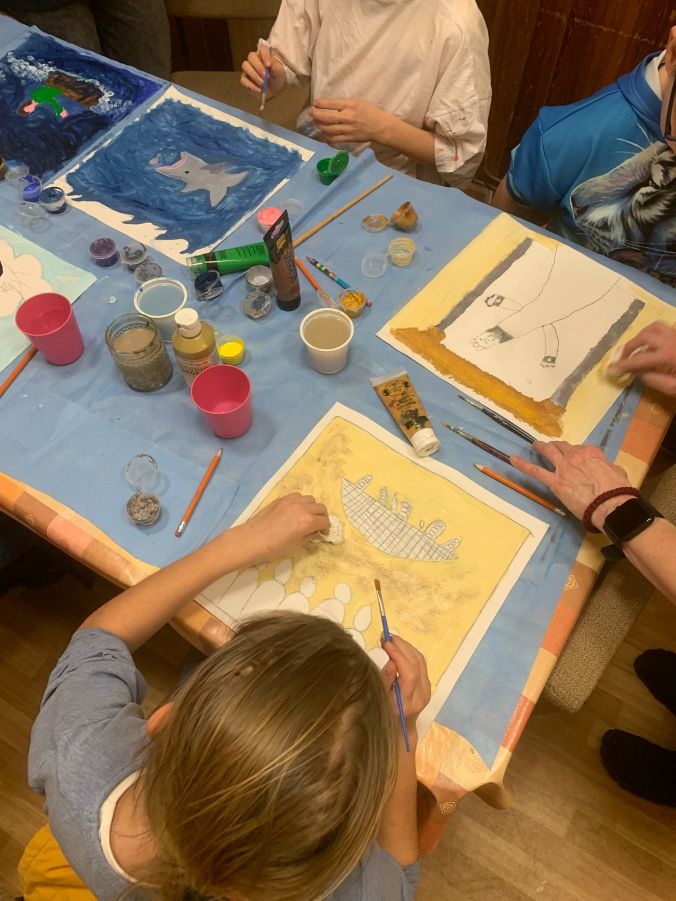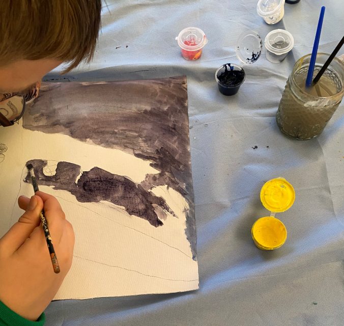Wir haben mit Acrylfarben auf Leinwand gemalt und mit Edding- und Acrylstiften den Bildern den letzten Schliff verpasst.