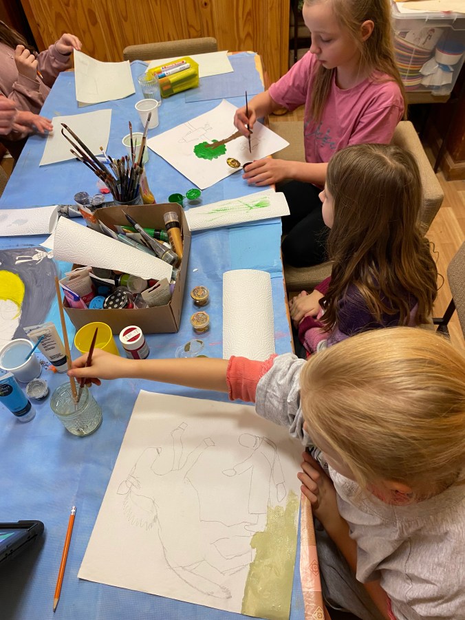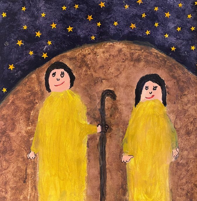 Abraham und Sarah unter dem Sternenhimmel der Verheißung – Ronja hatte viel Freude beim Malen und Sternlein aufkleben.