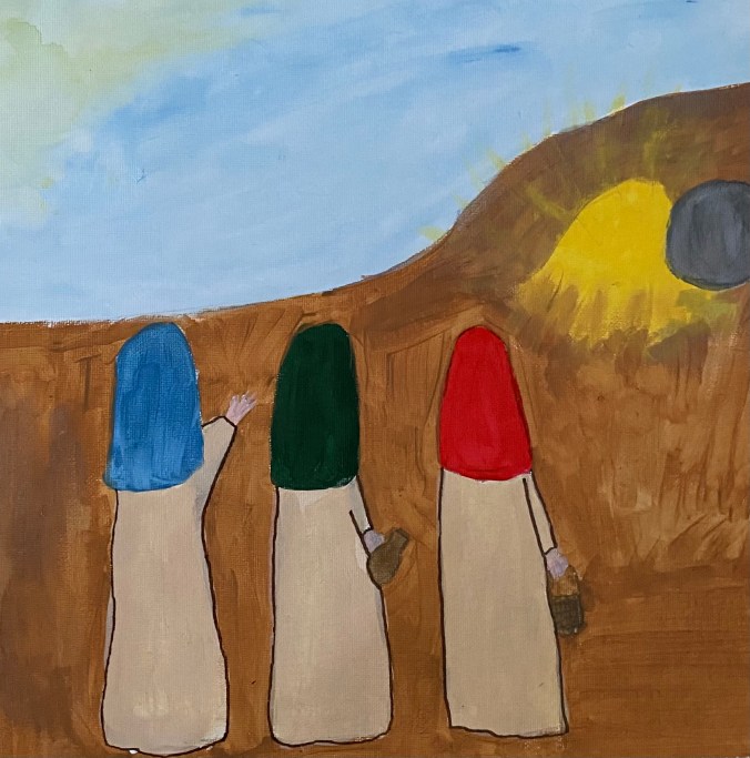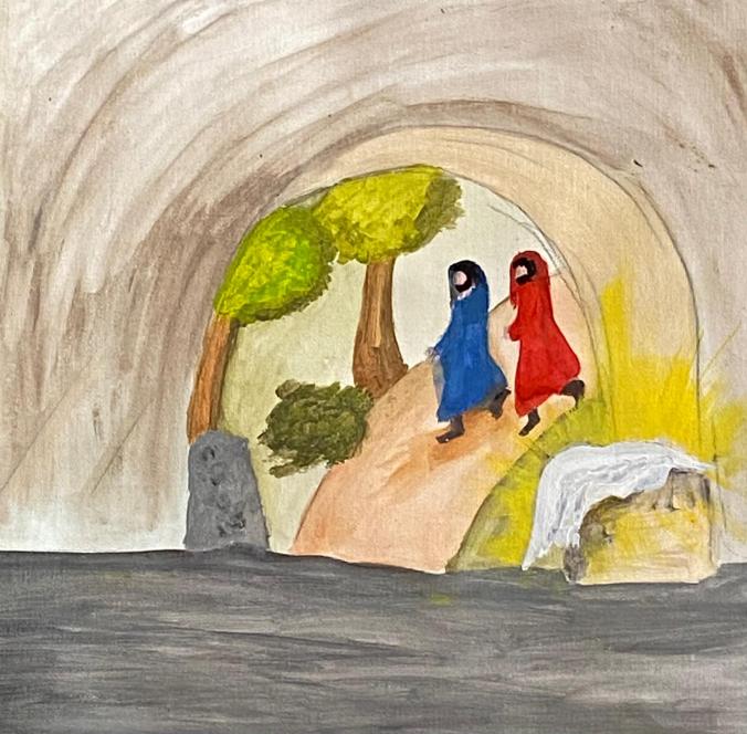 Früh am Morgen gehen die Frauen zum Grab – aber Jesus ist nicht mehr bei den Toten. DANKE Anna für Deine Hilfe.