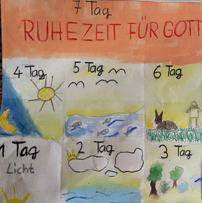 Paula hat gemalt, wie Gott alles schön gemacht hat. Und der Ruhetag steht über allem 🙂