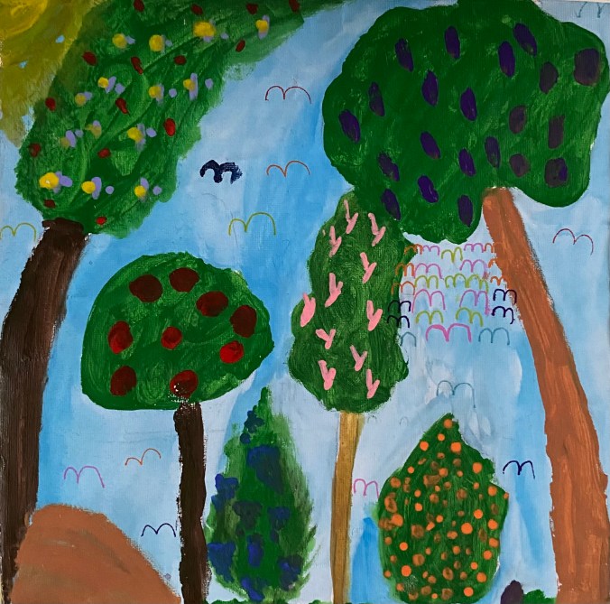 Ist das nicht ein schönes Paradies?! Das hat Lisbeth ganz alleine gemalt.