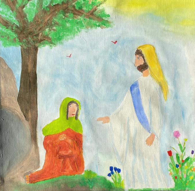 Maria Magdalena hält Jesus zuerst für einen Gärtner – das hat Seraphina wunderbar gemalt