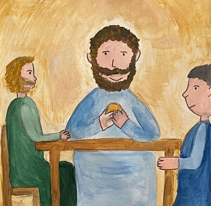 Erst als Jesus das Brot bricht, erkennen ihn die zwei „Emmausjünger“. Emma hat dieses Meisterwerk gemalt.