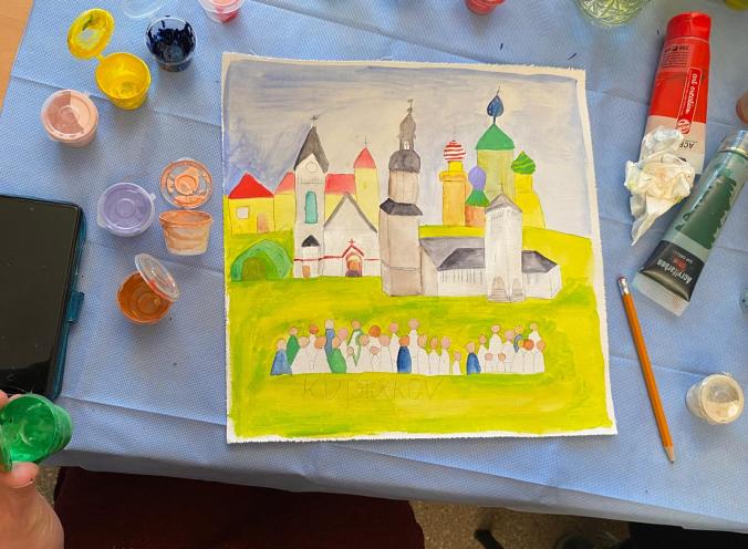 Sogar unsere Pfarrerin hat mitgemalt – erkennt ihr unsere Kirchen?