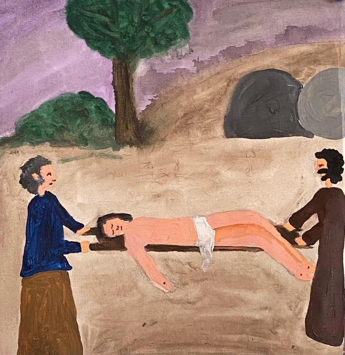 Jesus wird ins Grab gelegt – das hat Maria mit ein wenig Hilfe toll gemalt